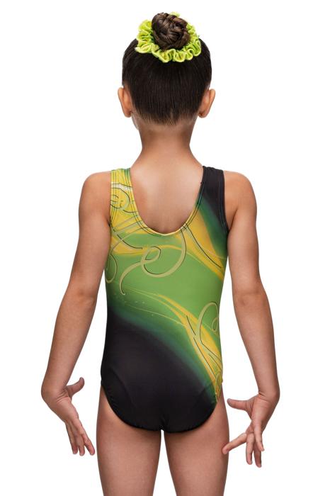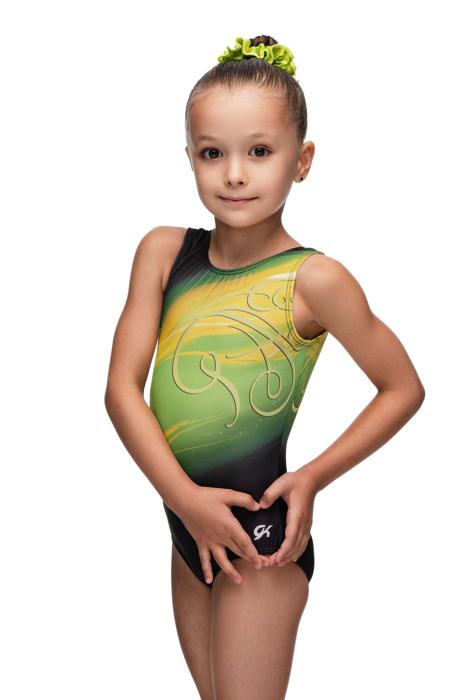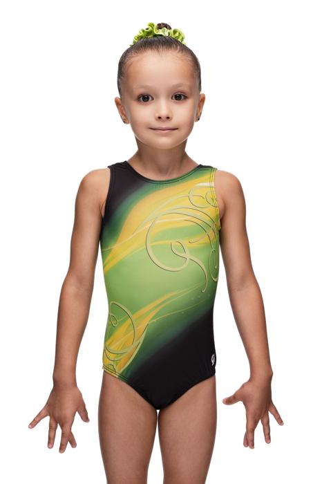 Купальник женский для спортивной гимнастики GK Elite E2662 черный с желтыми зеленым без рукава