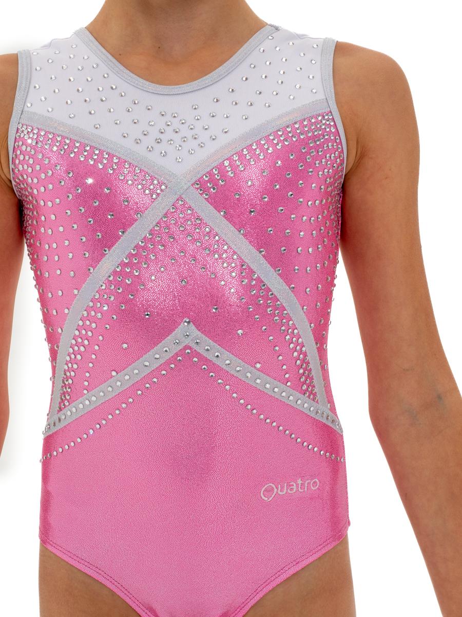 Гимнастический купальник для выступлений . Для занятий гимнастикой, акробатикой, прыжками на батуте. Перед украшен стразами в количестве более 2000 штук.