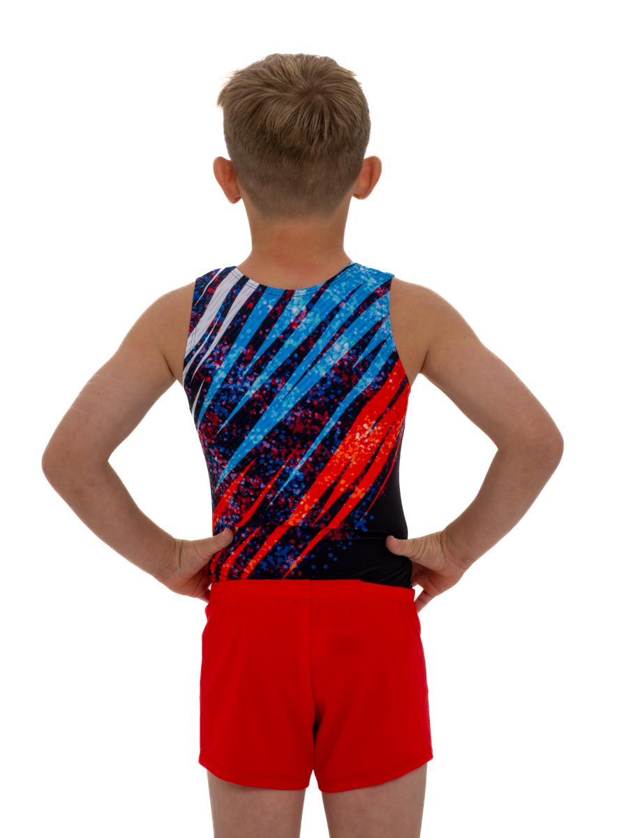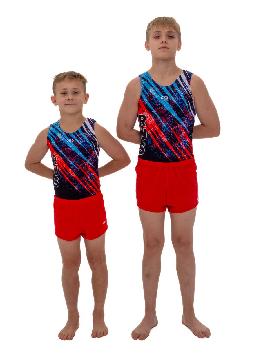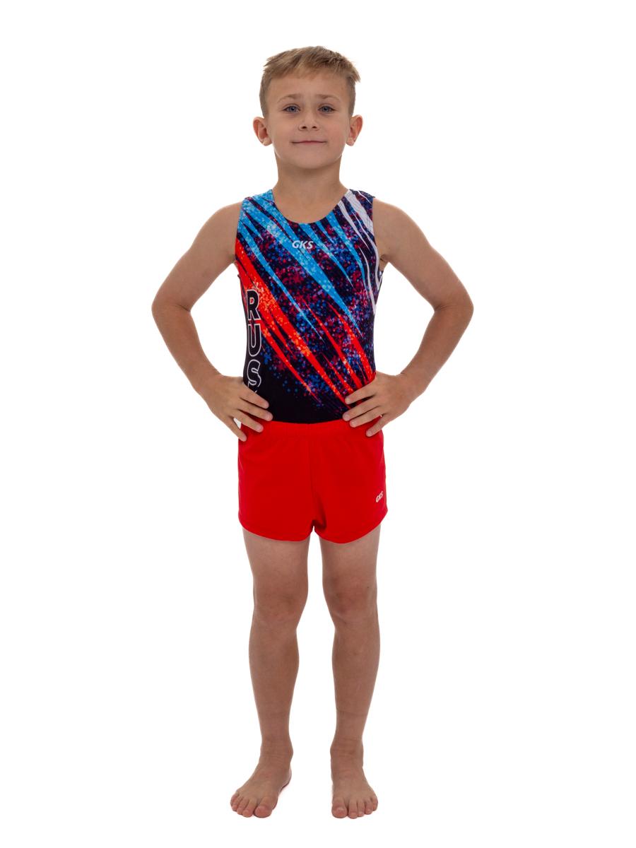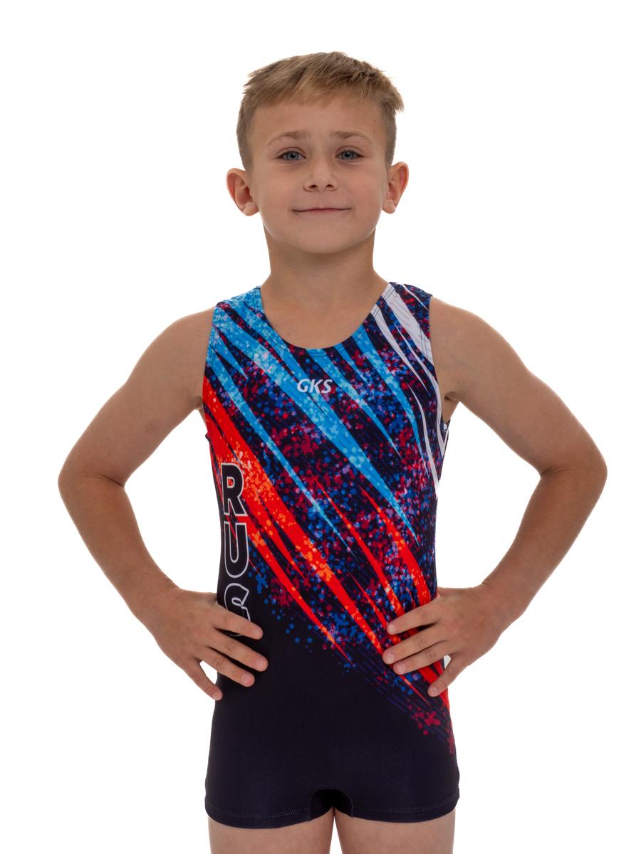Купальник мужской для спортивной гимнастики GK Sport RUS 201-13 черный с красно-синим рисунком без рукава