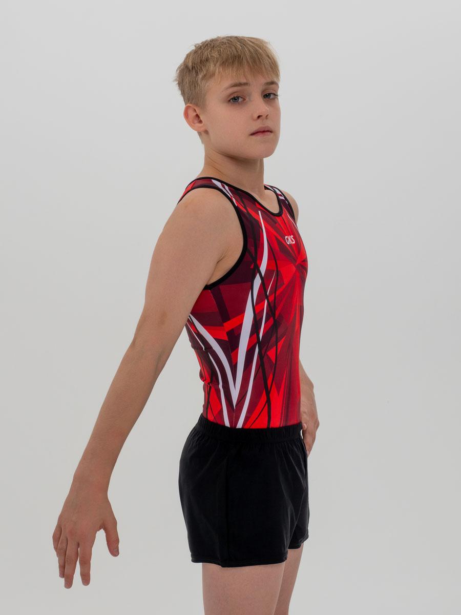 Купальник мужской для спортивной гимнастики GK Sport 201-12 красно-черный без рукава
