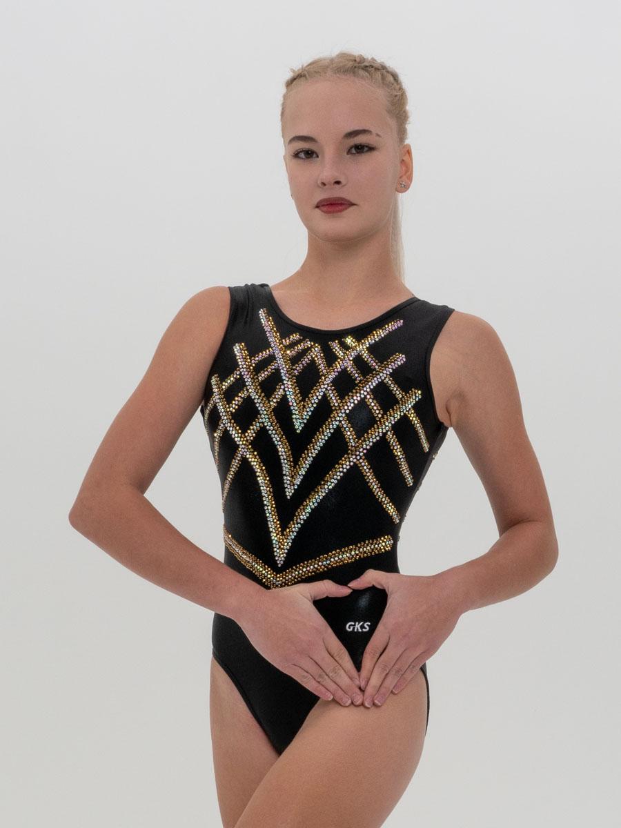 Гимнастический купальник с длинным рукавом для выступлений . Для занятий гимнастикой, акробатикой, прыжками на батуте. Перед и спинка украшены стразами в количестве более 2000 штук.