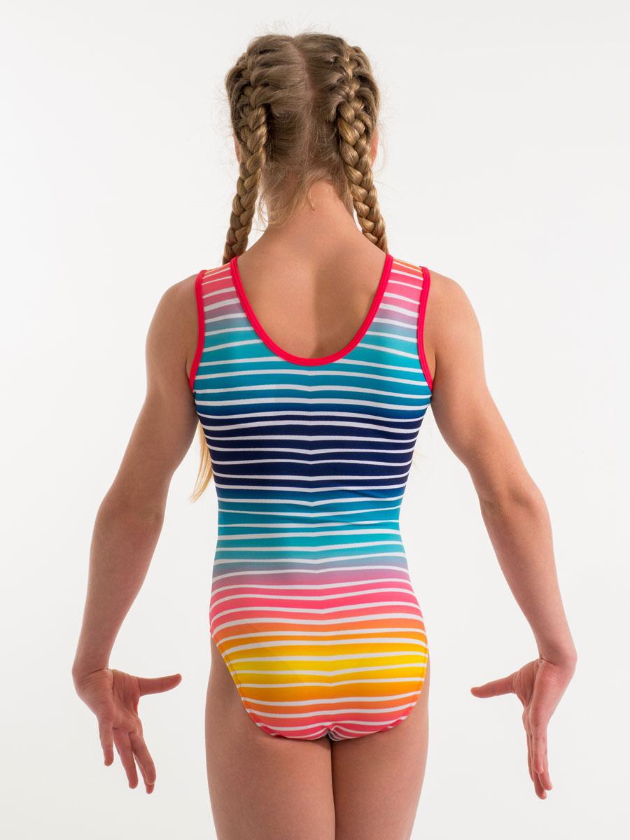 Купальник женский для спортивной гимнастики GK Sport RGK 0200-2 SONYA полосатая радуга без рукава