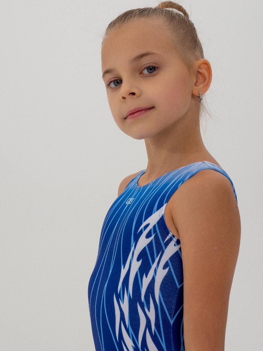 Купальник женский для спортивной гимнастики GK Sport 202-211 синий с белым без рукава