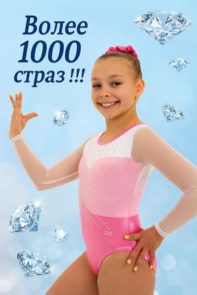 Гимнастический купальник с длинным рукавом для выступлений . Для занятий гимнастикой, акробатикой, прыжками на батуте. Перед, спина и рукава украшены стразами в количестве более 800 штук.