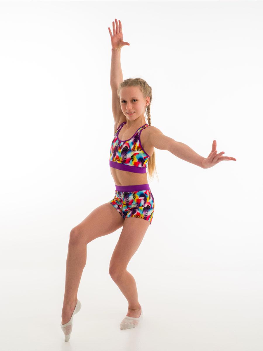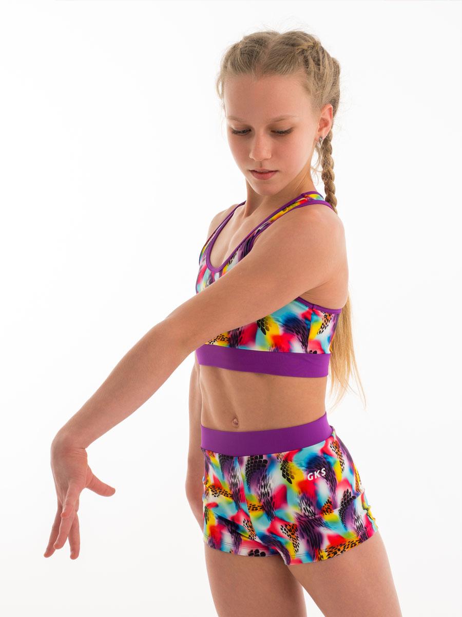 Гимнастический комплект топ с шортами для тренировок. Для занятий гимнастикой, акробатикой, прыжками на батуте.